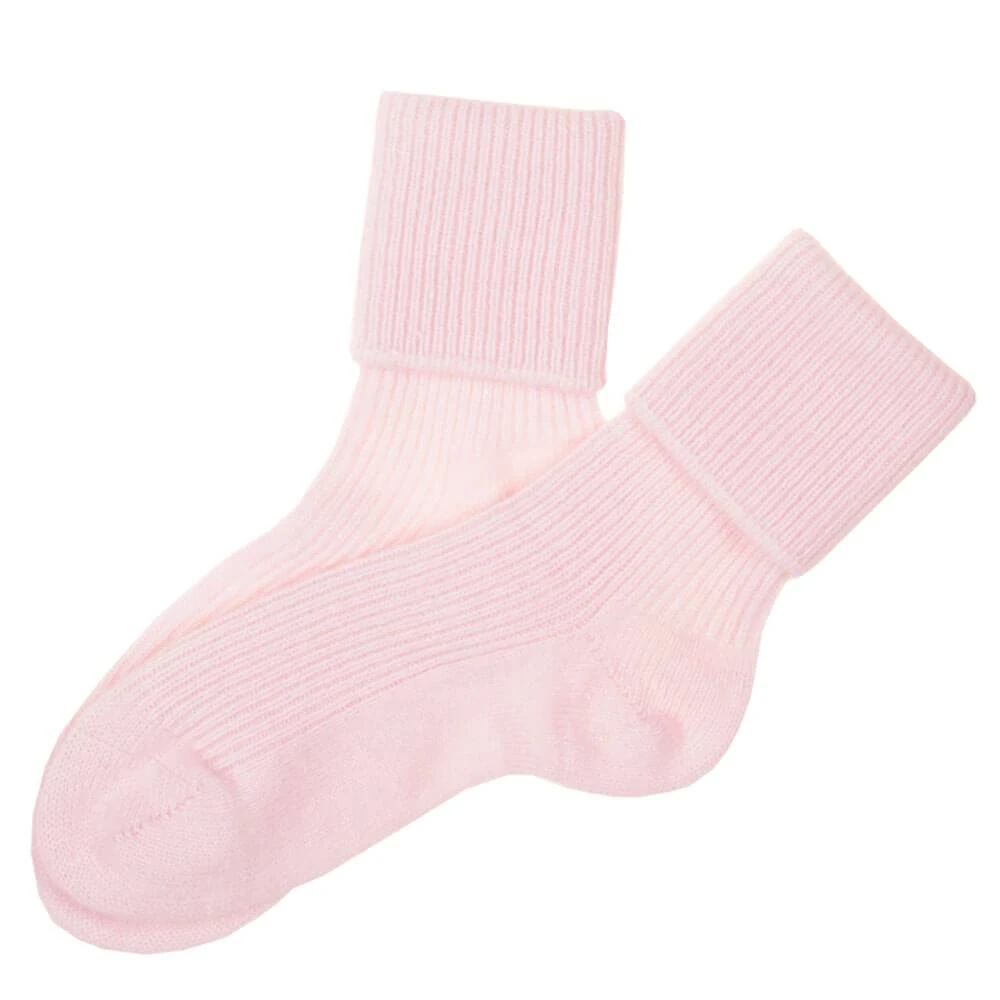 Supremely soft these pink cashmere bed socks are a real treat for bed or for just lounging at home. Warm and cosy they are made in Scotland from the best cashmere yarn and make the perfect luxury gift at a good price. The cuff can be pulled up for extra warmth. Give a little luxury and why not have it gift wrapped with a personal message.