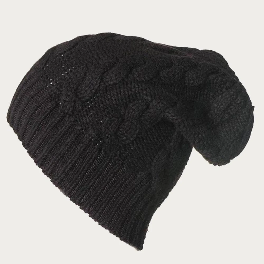 A thick chunky cable knit gives this ultra soft black cable knit cashmere slouch beanie a luxurious look and feel. Crafted in Italy from top quality pure cashmere it is finished with a 6 cm rib knit cuff which can be worn down for a generous slouch or turned up for a closer fit.