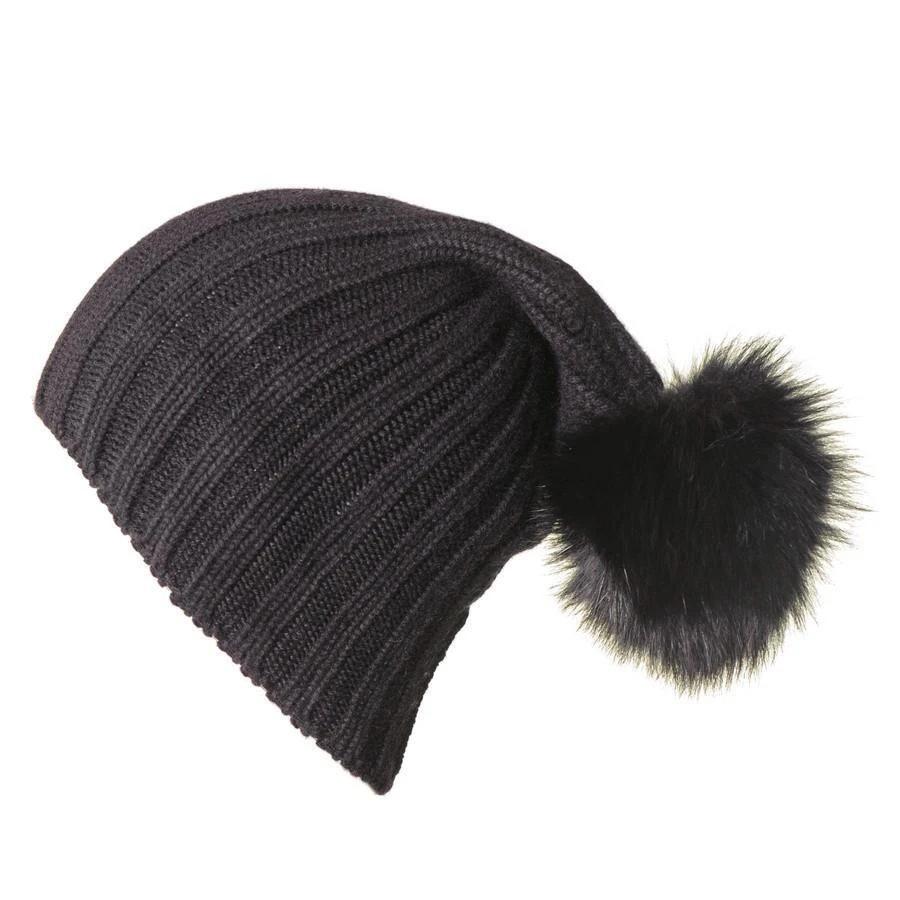 Sumptuously soft and ultra warm this chunky rib knit black cashmere fur pom pom hat will ensure you look chic whilst keeping winter chills at bay. Crafted in Italy from top quality pure cashmere this bobble hat is finished with a cheeky black fox fur pom pom. The 8cm deep ‘cuff’that can be turned down for a chic slouchy look.