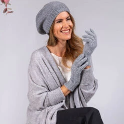 Complementing the shawl, the Rib Knit Black Cashmere Slouch Beanie provides warmth without sacrificing style. Made from sumptuous cashmere, this beanie offers a relaxed, comfortable fit, making it an ideal choice for those cooler days when you want to maintain a polished appearance.