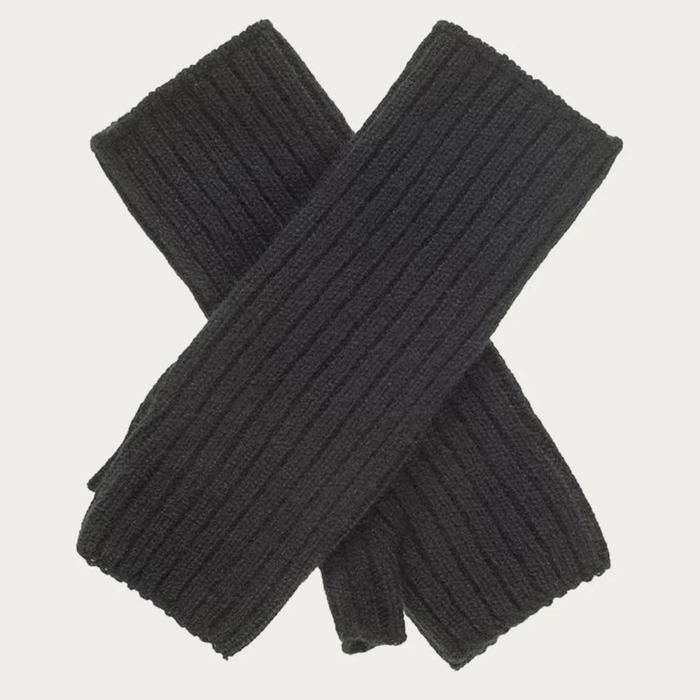 Extending well above the wrist for extra warmth these black cashmere wrist warmers, rib knitted from 100% Scottish cashmere, are cosy, soft and practical. Perfect hand warmers they will keep fingers and hands beautifully warm while leaving your fingers free to do lots of other things. It is always a surprise that although your fingers remain uncovered they still get warm in these. That’s the beauty of cashmere.