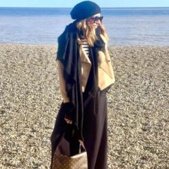 Black Gossamer Cashmere Shawl And Rib Knit Slouch Beanie Set