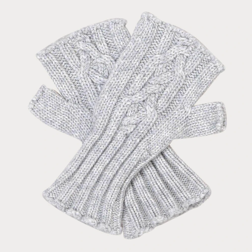 Luxuriously thick, warm and soft, these grey cable knit cashmere wrist warmers are knitted in a cable and rib design making them chic as well as practical. Made in Italy from high quality cashmere yarn they extend well above the wrist for extra warmth. They will keep your fingers free to do lots of tasks with warm hands. That’s the magic of cashmere. A clever gift idea.