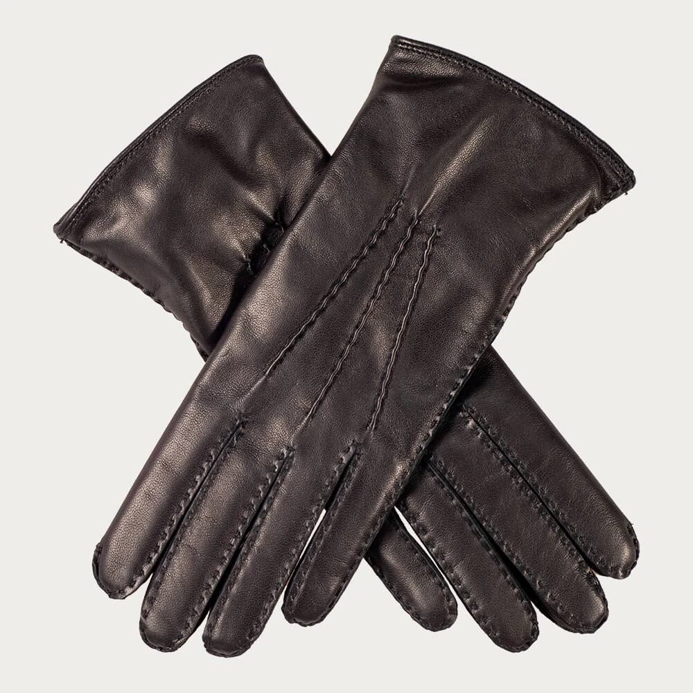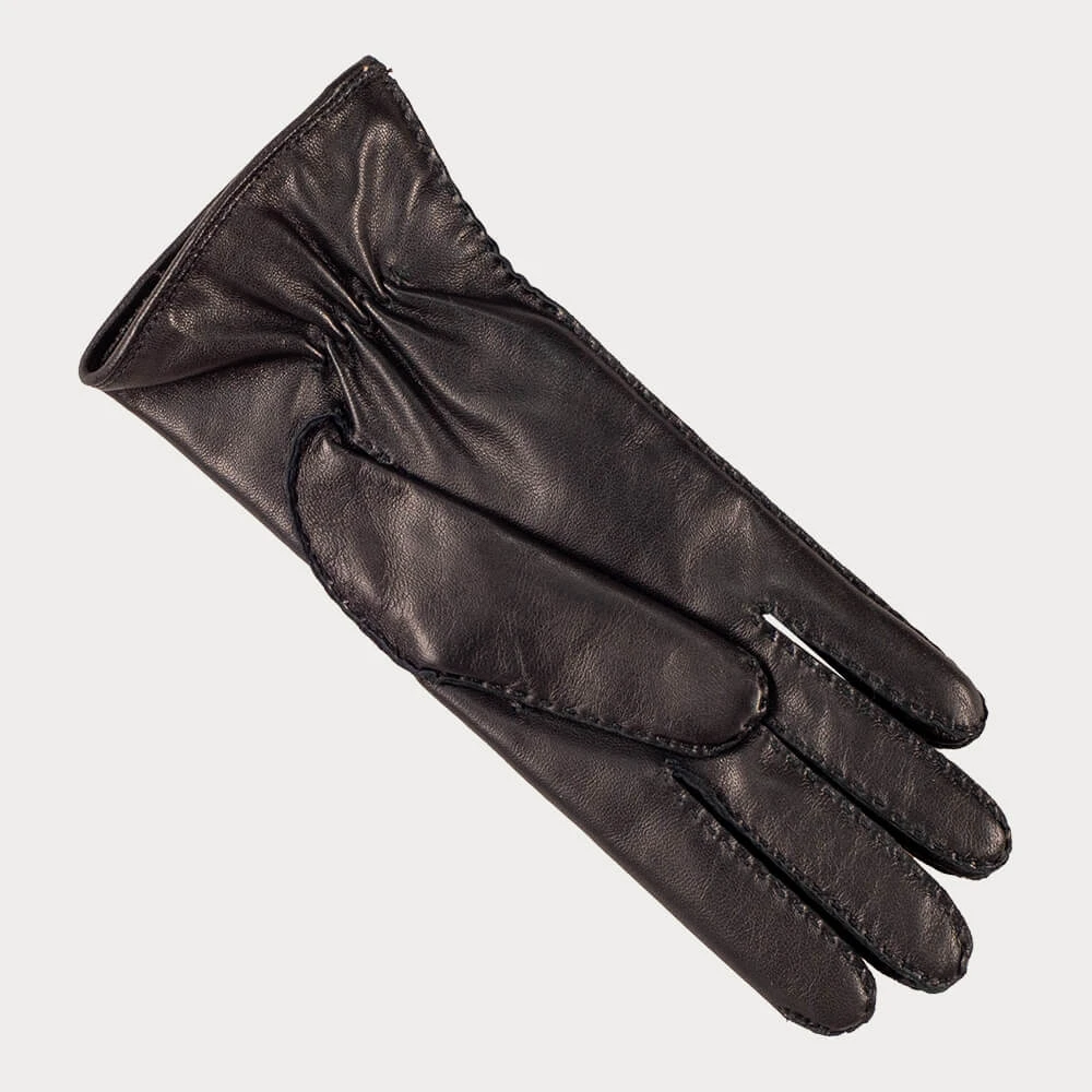 Classically designed, these hand stitched cashmere lined black leather gloves in the softest Italian nappa leather are skilfully and meticulously crafted with traditional hand stitching. They are finished with three points for that extra professional touch and fully lined with soft, warm natural 100% cashmere. The timeless style and superb quality makes for a failsafe luxury gift.