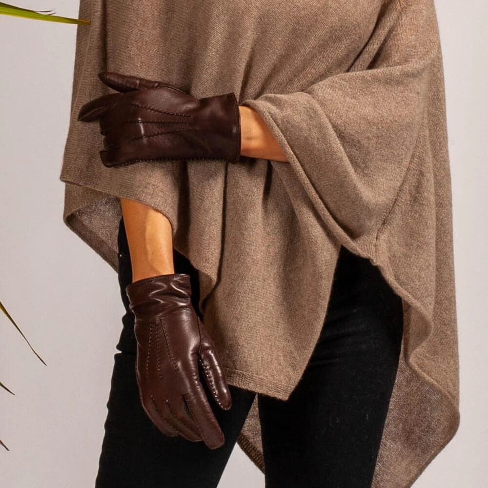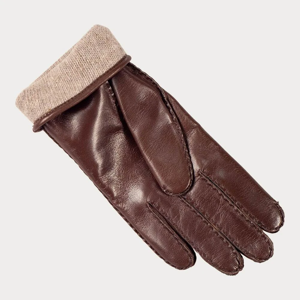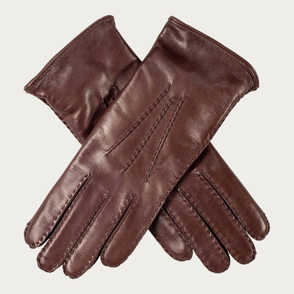 Hand sewn in the time honoured tradition these dark brown cashmere lined leather gloves are meticulously crafted in Italy from buttery soft nappa leather. The three points give them a refined elegance and the 100% cashmere lining ensures warmth and softness. The timeless style and superb quality makes for a failsafe luxury gift.