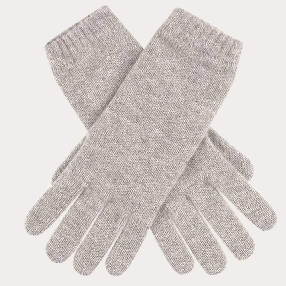 Luxurious grey cashmere gloves made from pure Scottish cashmere with a snug, flattering and slimline fit. The knitted cashmere gloves feature a short ribbed cuff for extra warmth and extend above the wrist. The perfect glove for chilly days and an ideal gift. Team these supersoft cashmere gloves with a Grey Pointelle Cashmere Beanie Hat and light Navy and Grey Cashmere Double Snood for a classic and cosy winter look.