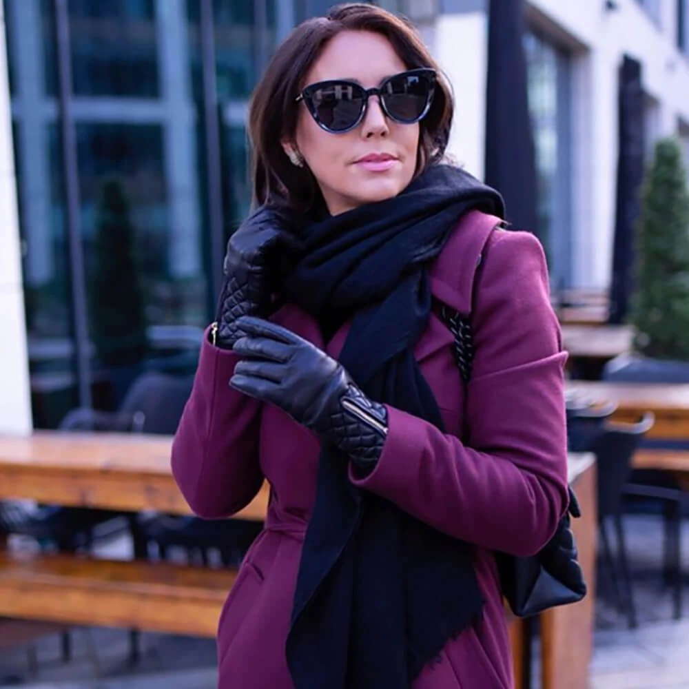 Paired with the shawl, the Navy Quilted Leather Gloves offer a sleek combination of style and warmth. These gloves are crafted with precision from high-quality leather, featuring a quilted design that adds texture and interest. The gloves are not only functional but also the epitome of classic chic, keeping your hands warm while exuding refined style.