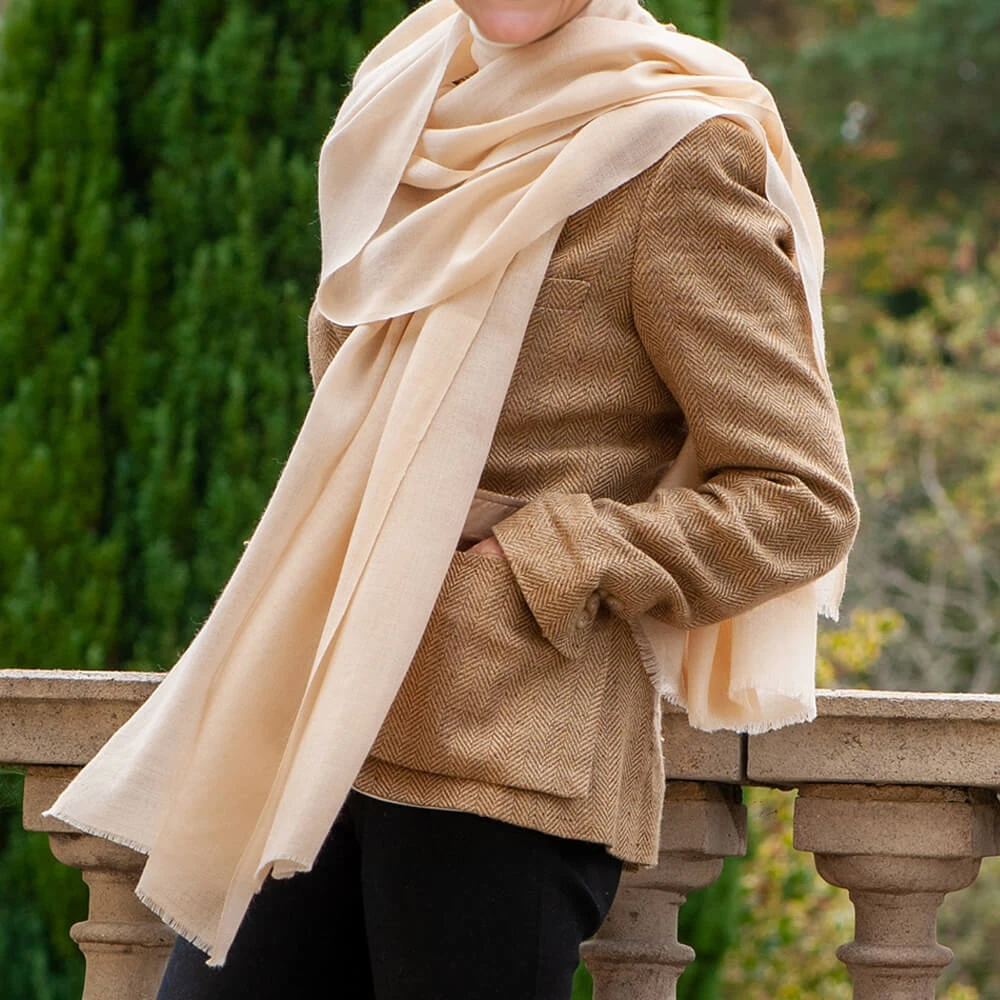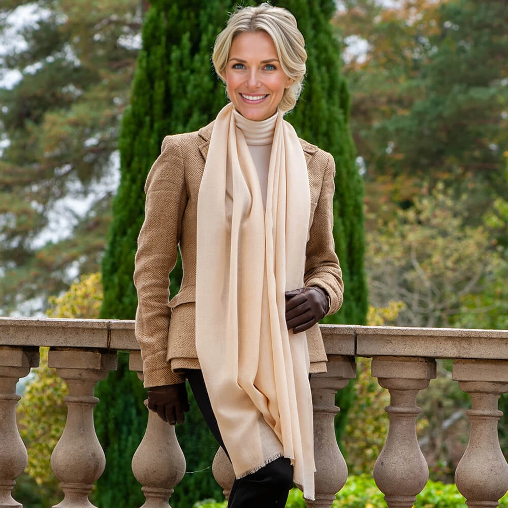 The pearl, June’s Birthstone, has soft, lustrous tones that echo timeless purity, symbolising, innocence wisdom and integrity all qualities reflected in the soft hue of this pearl cashmere and silk wrap. Crafted from a luxurious blend of cashmere and silk, it is soft, light but warm and offers a fluid drape with a subtle sheen. Understated and chic this wrap embodies the quiet grace of June’s gem.