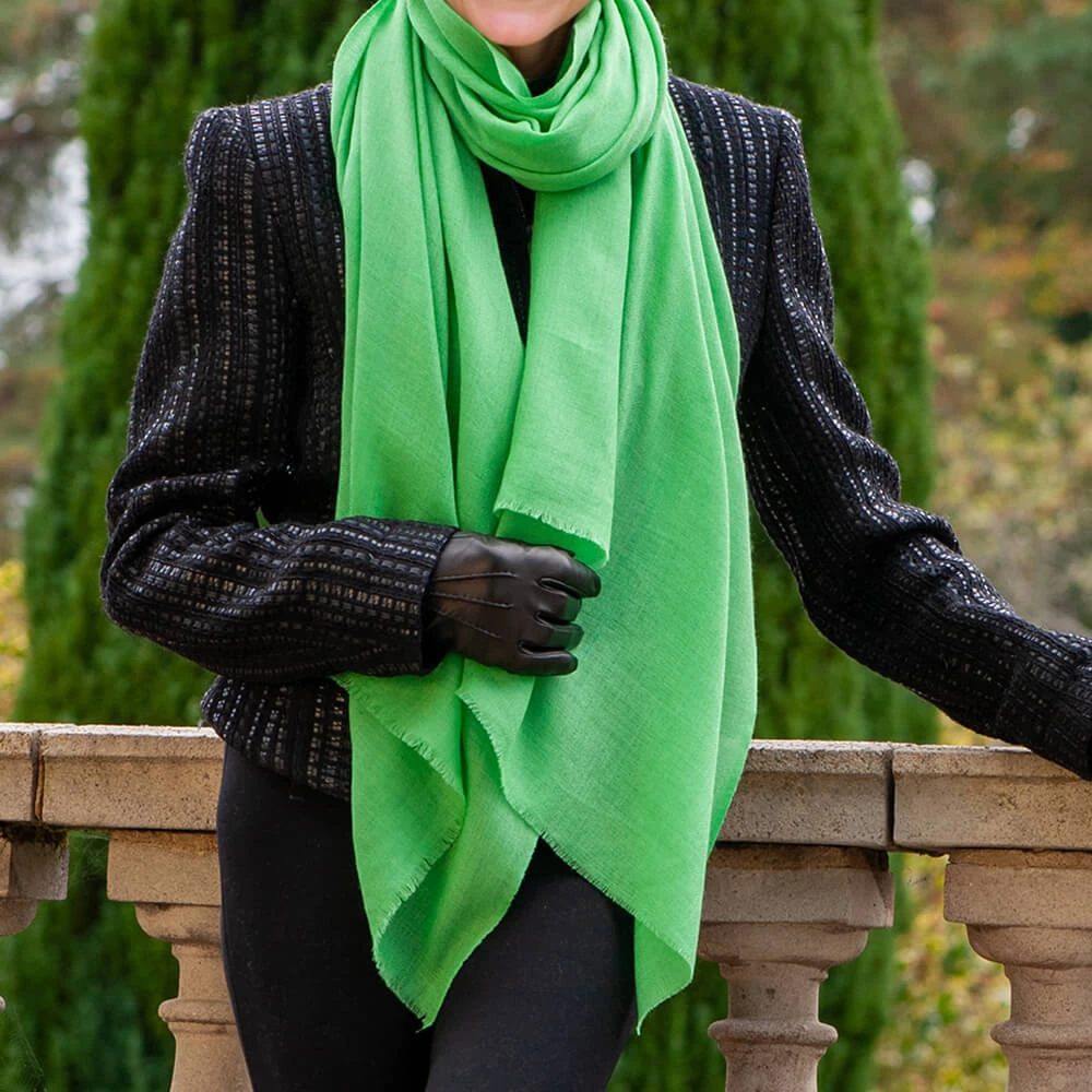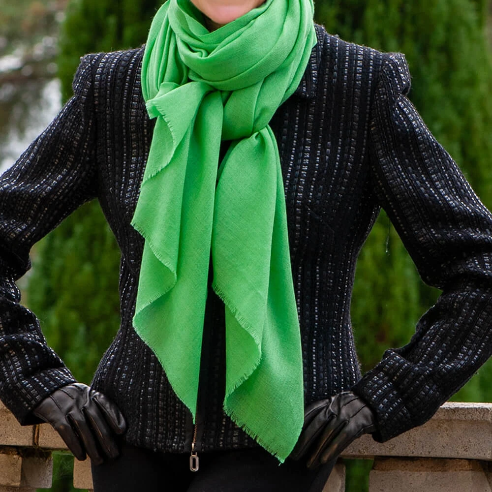 Peridot, August’s Birthstone, symbolises prosperity, good fortune, confidence and strength. Historically it was said to ward off evil spirits and bring peaceful sleep. This cashmere and silk wrap in a cool soft tone reflects these qualities. Crafted from a luxurious blend of cashmere and silk, it is soft, light but warm and offers a fluid drape with a subtle sheen. Luxury with meaning, designed to be cherished.
