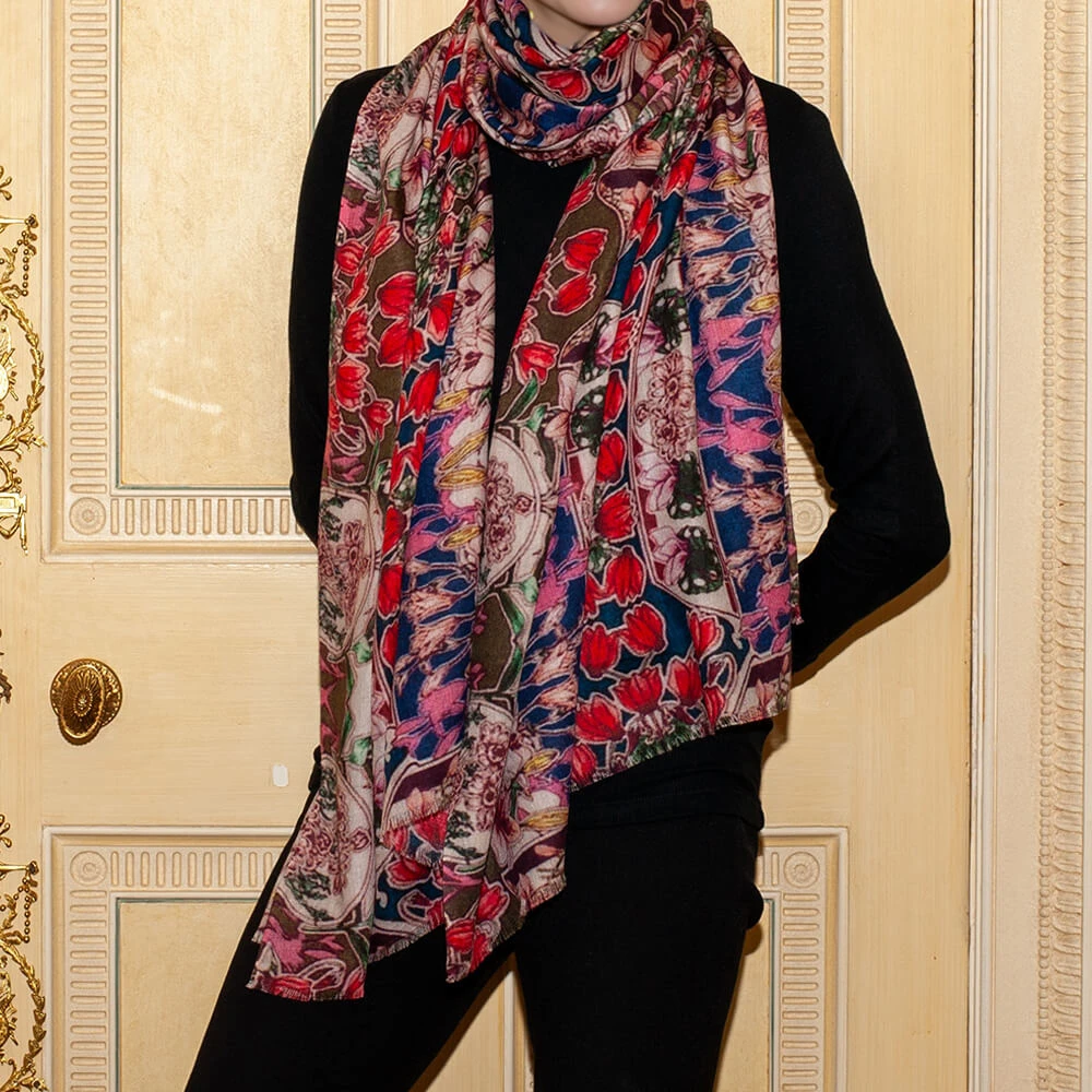 This Liberty collection, the ‘Art Nouveau’ Quintet of five intriguing cashmere and silk wraps re-imagines Liberty archive designs from two golden moments in decorative history: the flowing organic and linear forms of early Art Nouveau at the turn of the twentieth century and its spirited revival in the 1960s. Choose from Electric Nouveau, Prospect Road, Bohemia, Flower Fete and Ianthe.