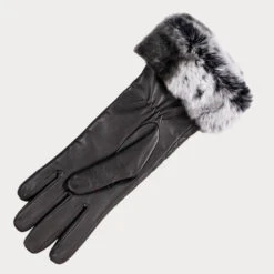 Pewter Grey Quilted Leather Gloves With Rabbit Fur Cuff