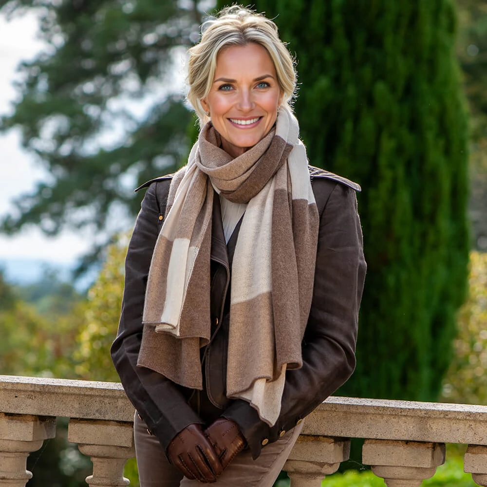 Experience the artistry of Italian craftsmanship in this set of three oversized cashmere scarves, each expertly knitted in a check/patchwork effect of tonal hues. Designed for enveloping warmth and effortless style, these scarves are luxuriously soft, warm, and wonderfully cosy. Choose your favourite from Earth Tones, Mono Tones and Neutral tones.