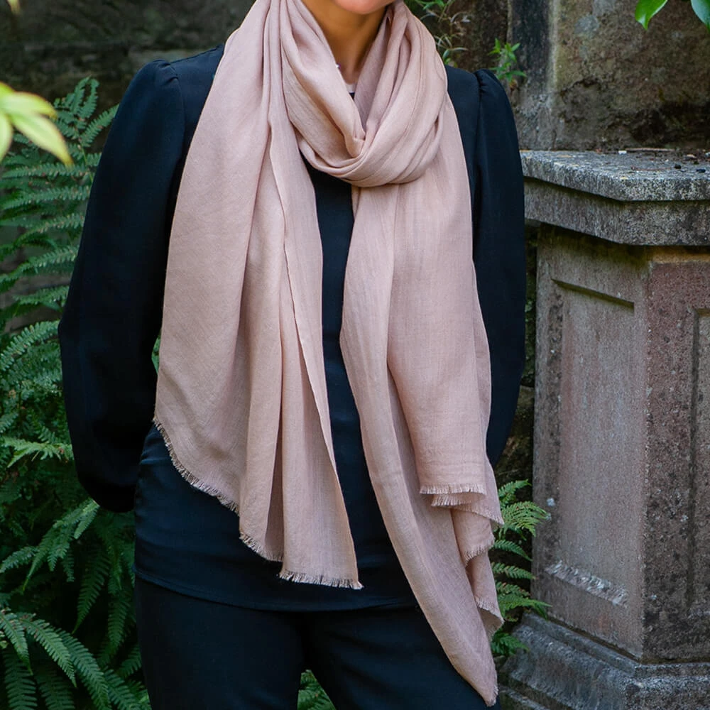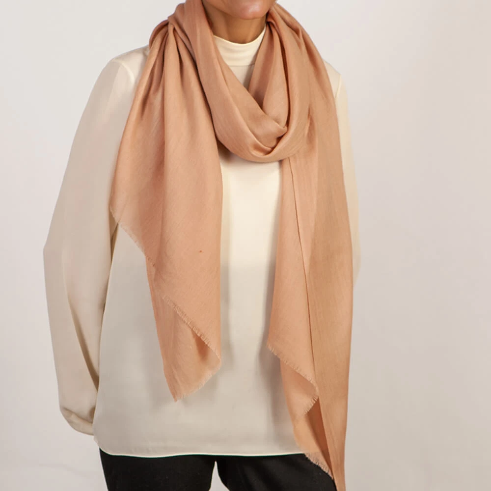 The soft gentle tone of the cinnamon bark gives this cashmere and silk wrap a subtle n feel, perfect to accessorise neutral colours. It is soft, light yet warm and drapes effortlessly.