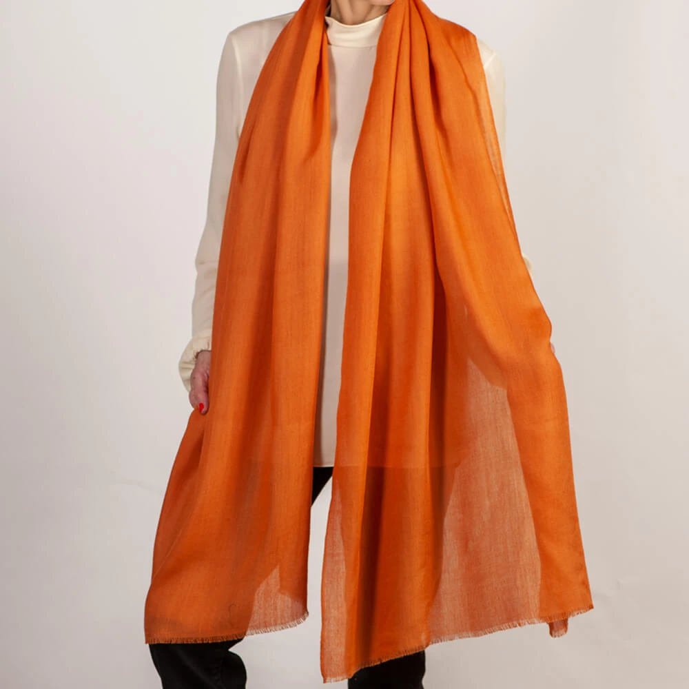 The Mixed Spice cashmere and silk wrap brings together multiple spice tones in a rich blend of warm browns and reds. Soft, light yet warm it combines comfort with elegance and it drapes effortlessly.
